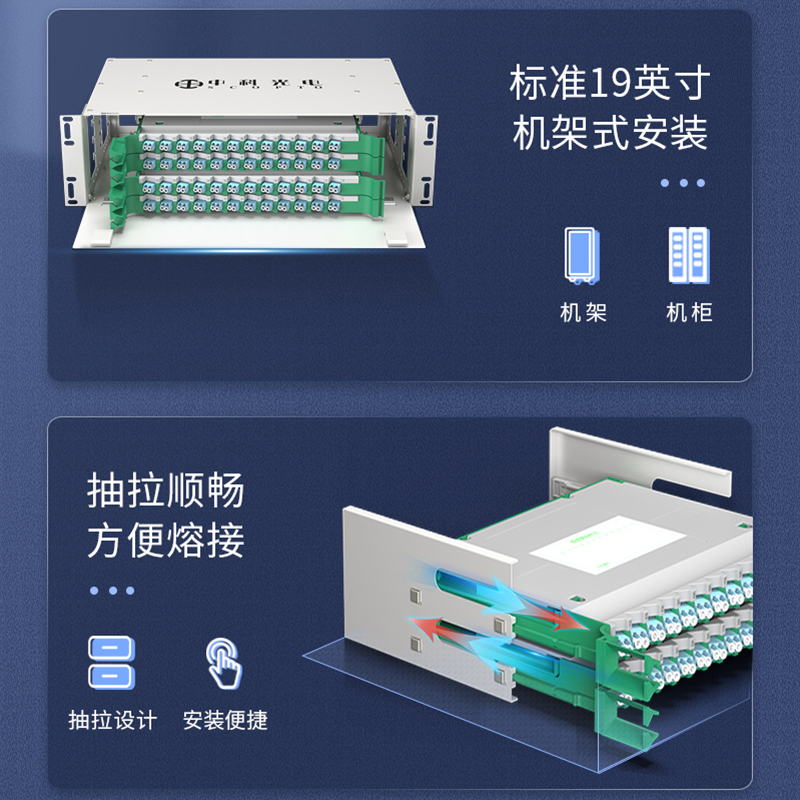 中科光電ZK-ODF-96LC-MM-OM4 96芯ODF光纖配線架LC萬(wàn)兆多模滿配箱 機(jī)架式終端盒子框單元體光纜尾纖熔接盤