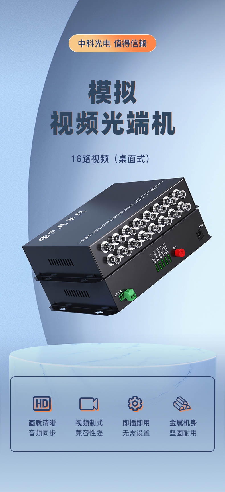 中科光電ZK-16V 模擬視頻光端機(jī)(桌面式)16路視頻 光纖收發(fā)器延長器 單纖單模FC接口 1對