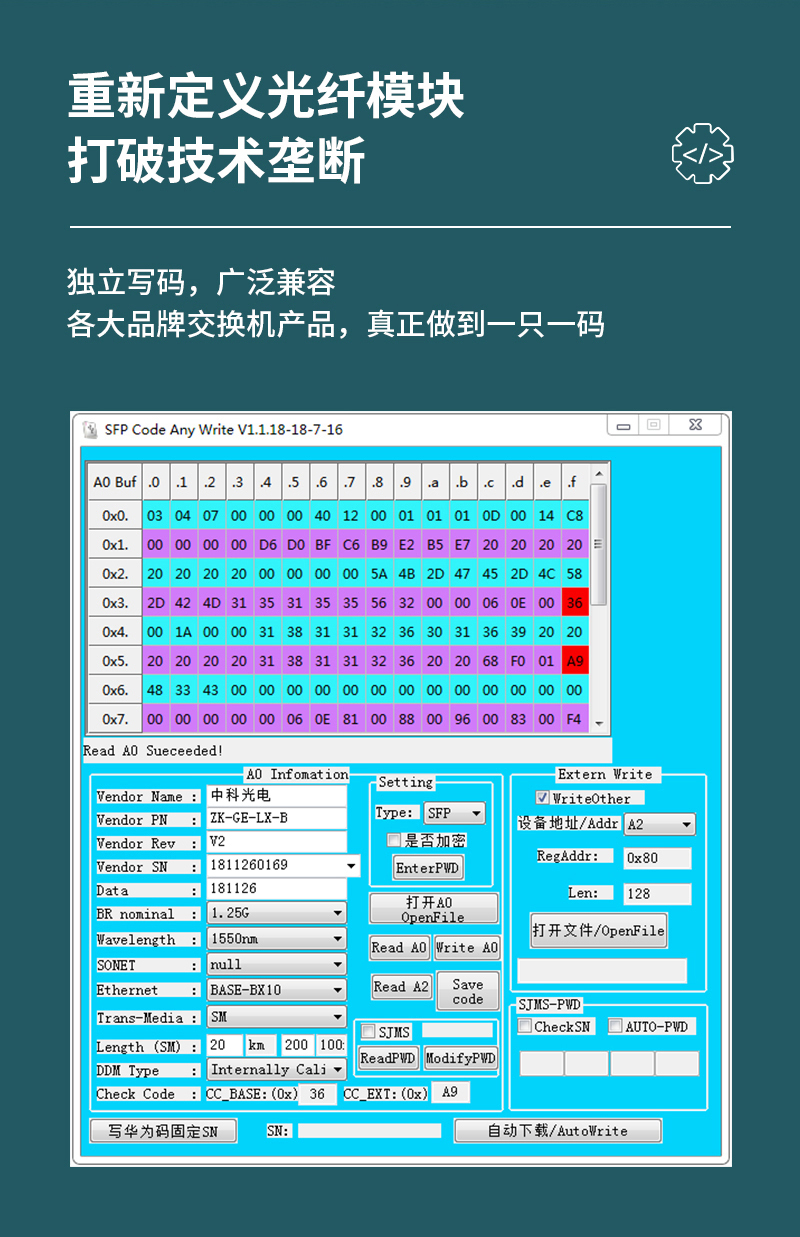 中科光電ZK-10G-BX-U SFP+光模塊萬兆10G單模單纖光纖模塊(1270nm,60km,LC)A適配華為交換機(jī)