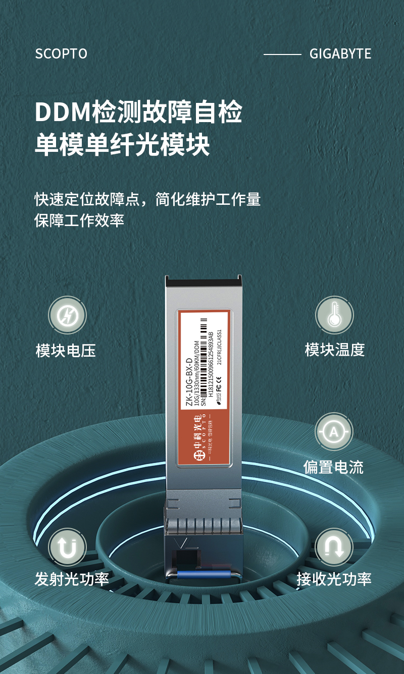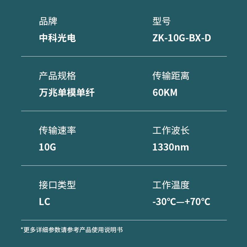 中科光電ZK-10G-BX-D SFP+光模塊萬兆10G單模單纖光纖模塊(1330nm,60km,LC)B適配華為交換機(jī)