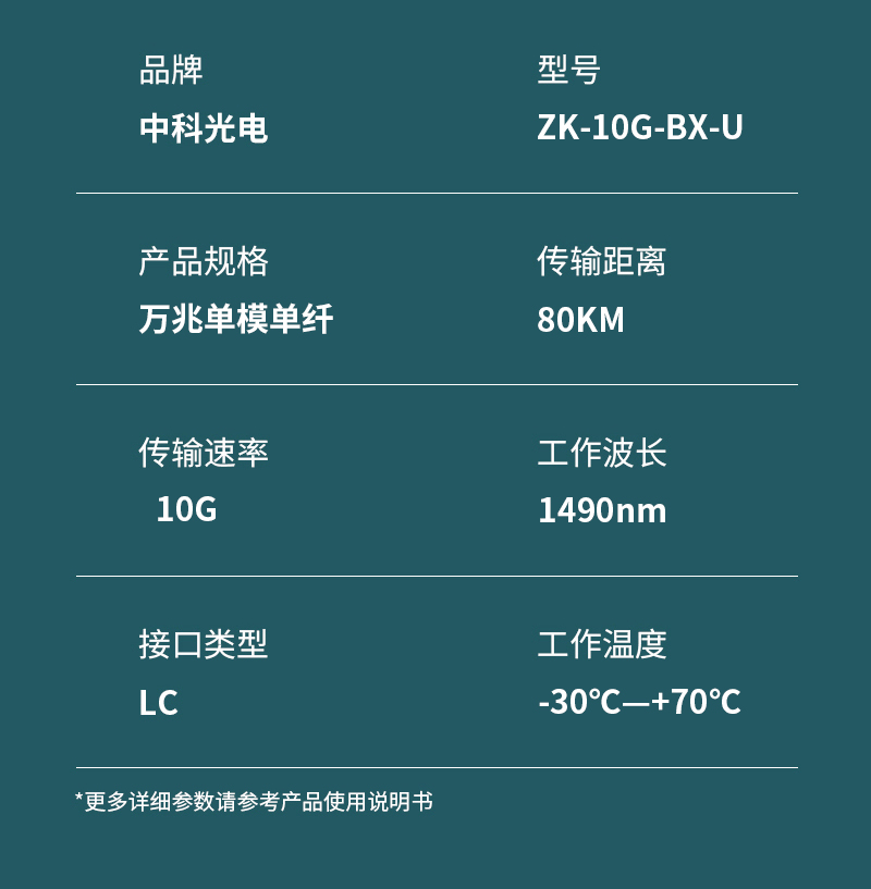 中科光電ZK-10G-BX-U SFP+光模塊萬兆10G單模單纖光纖模塊(1490nm,80km,LC)A適配華為交換機