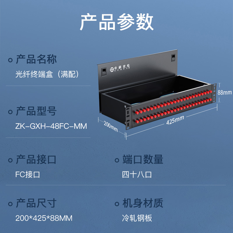 中科光電 光纖終端盒48口 48芯光纖配線架 光纜接續(xù)盒接線熔纖盒 FC多模滿配尾纖法蘭 機(jī)架式 ZK-GXH-48FC-MM