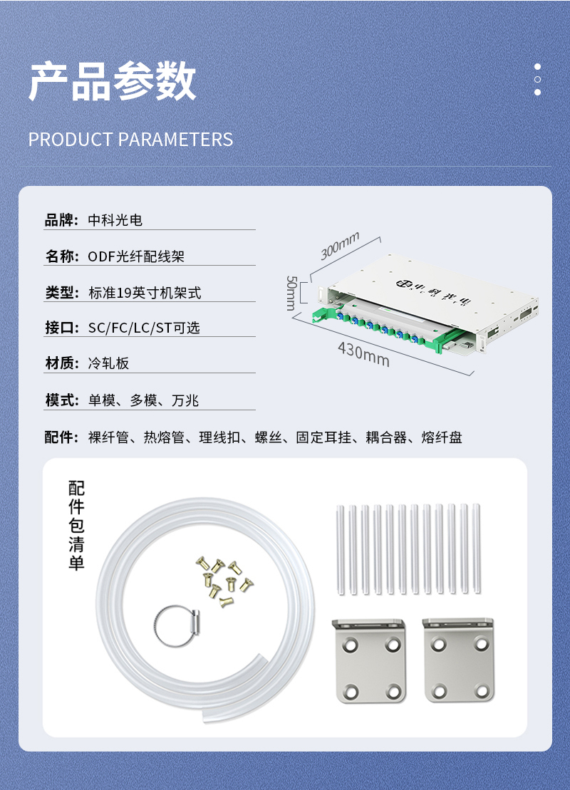 中科光電ZK-ODF-12LC-SM 12芯ODF光纖配線架LC單模滿配箱 19英寸機架式推拉終端盒子框單元體光纜尾纖熔接盤