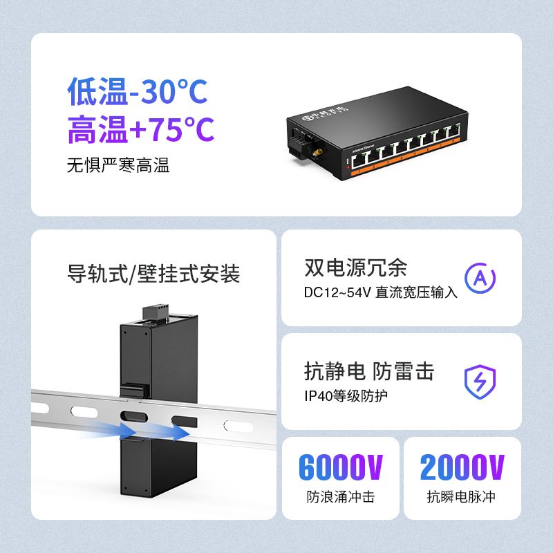 中科光電 8口百兆交換機 工業(yè)級以太網(wǎng)交換機 監(jiān)控網(wǎng)絡(luò)網(wǎng)線分線器分流器 無電源 ZK-7000-10-8FT