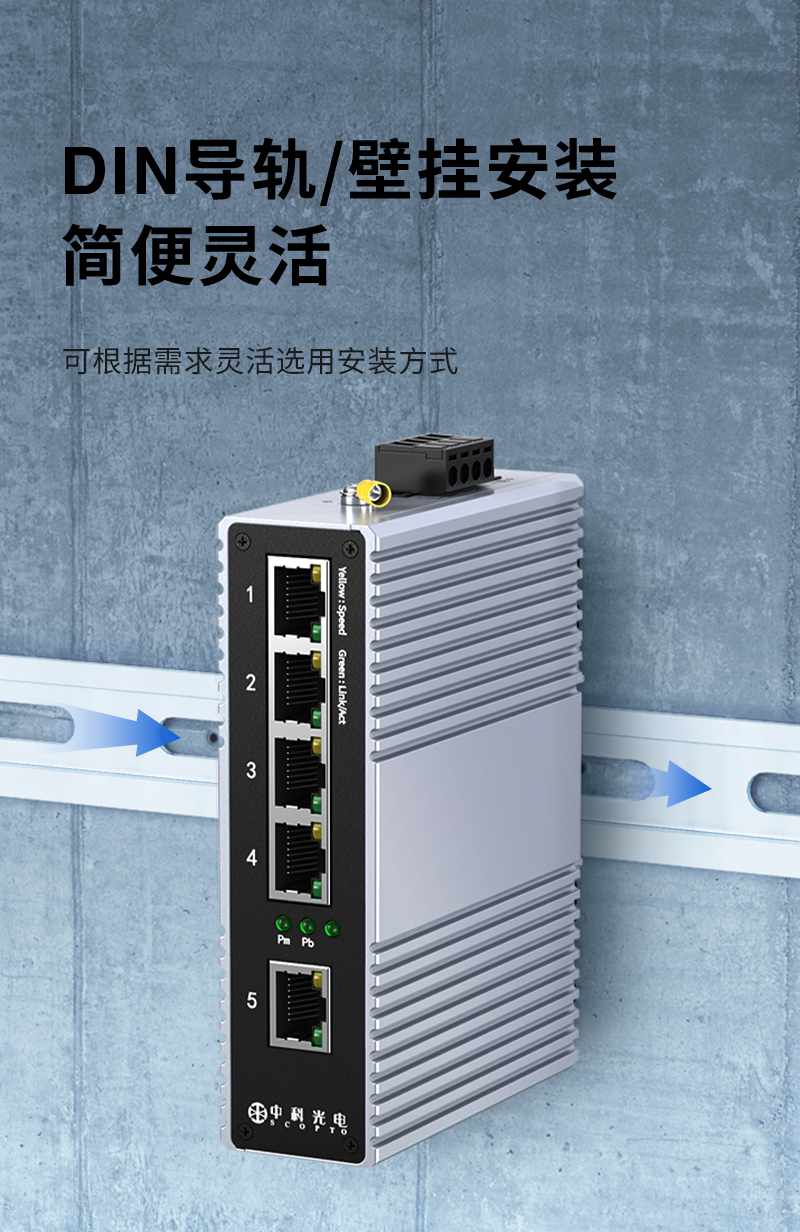 中科光電 工業(yè)級(jí)交換機(jī)5口百兆 安防監(jiān)控?cái)z像頭以太網(wǎng)絡(luò)分流線器12V/24V/48V壁掛導(dǎo)軌式 ZK-7000-10-5FT