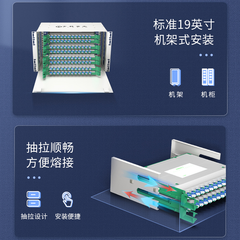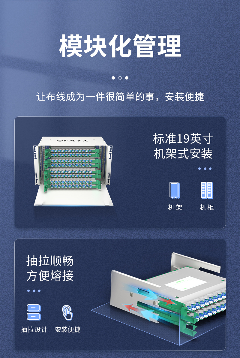 中科光電ZK-ODF-192LC-SM 192芯ODF光纖配線架LC單模滿配箱 19英寸機架式推拉終端盒子框單元體光纜尾纖熔接盤