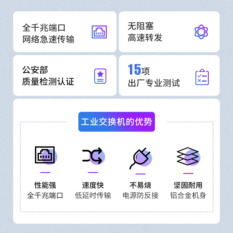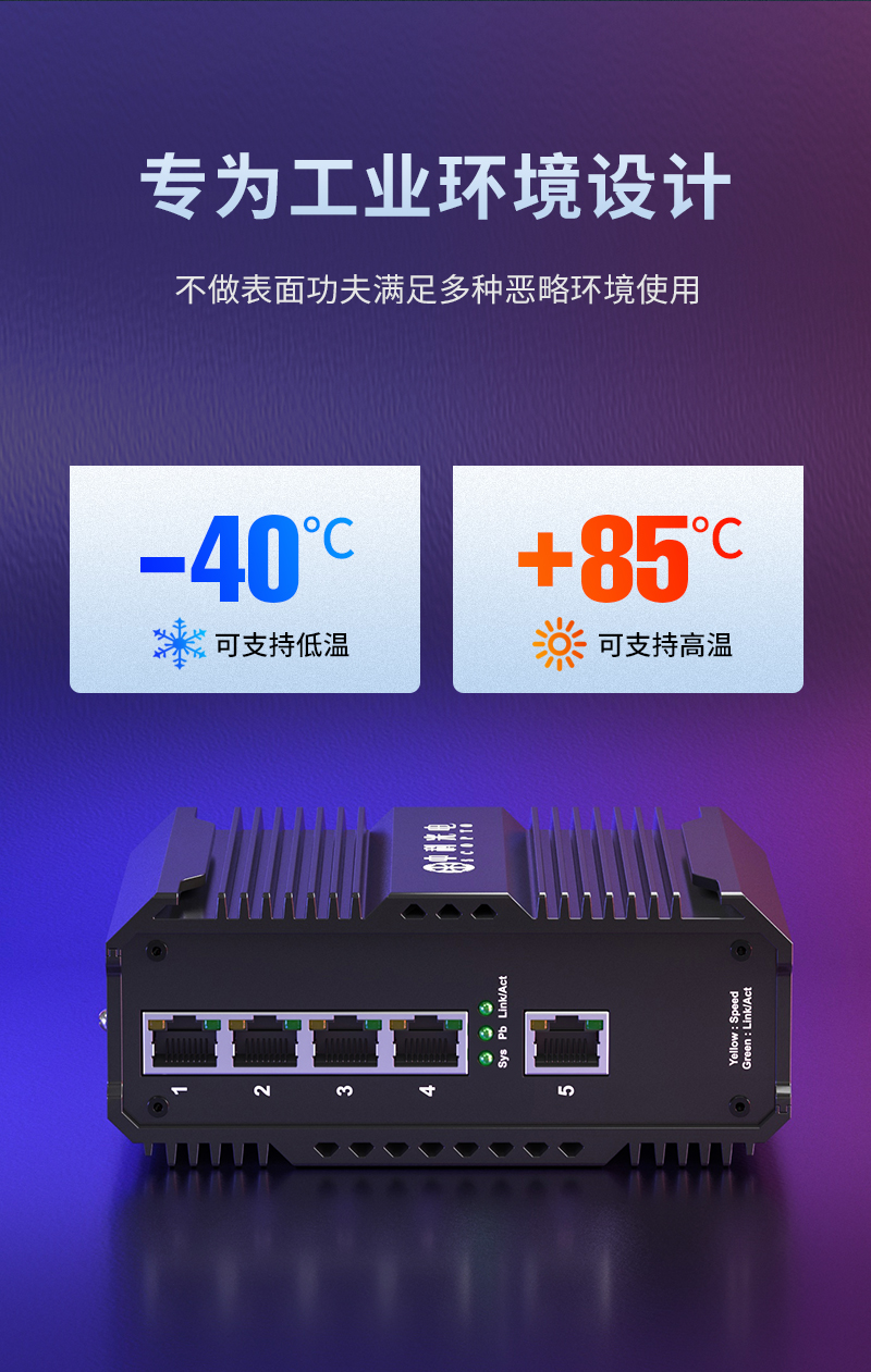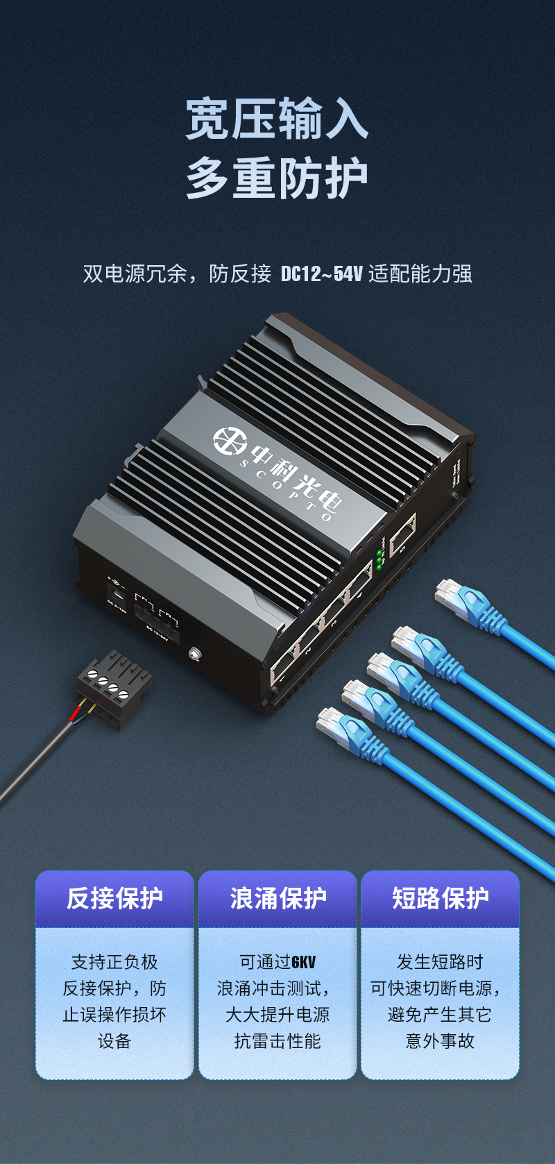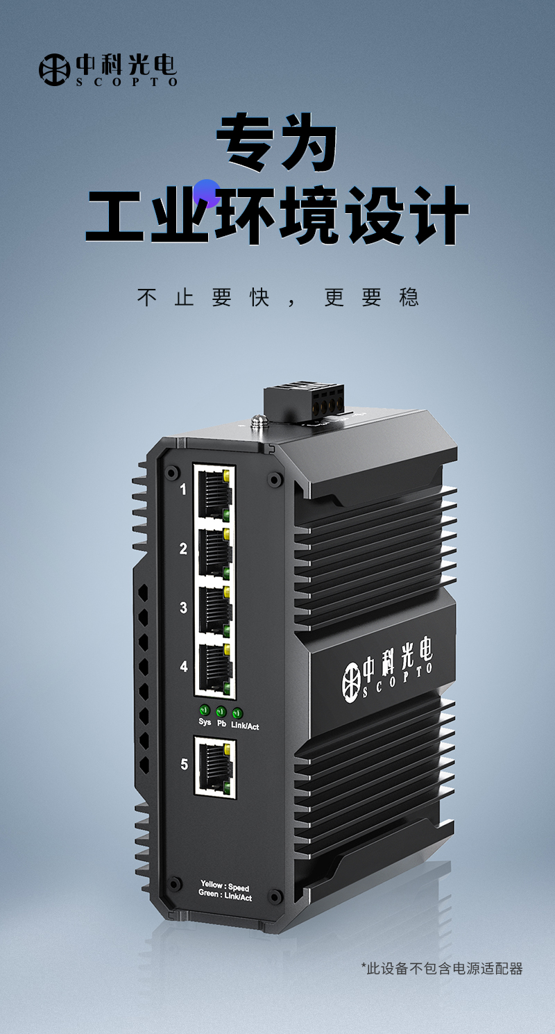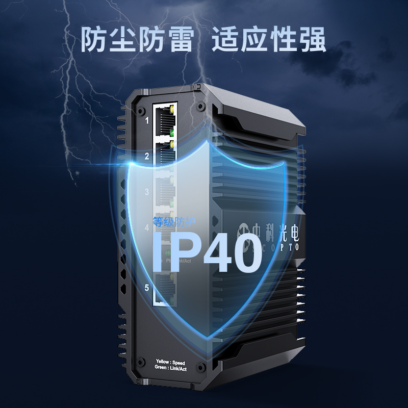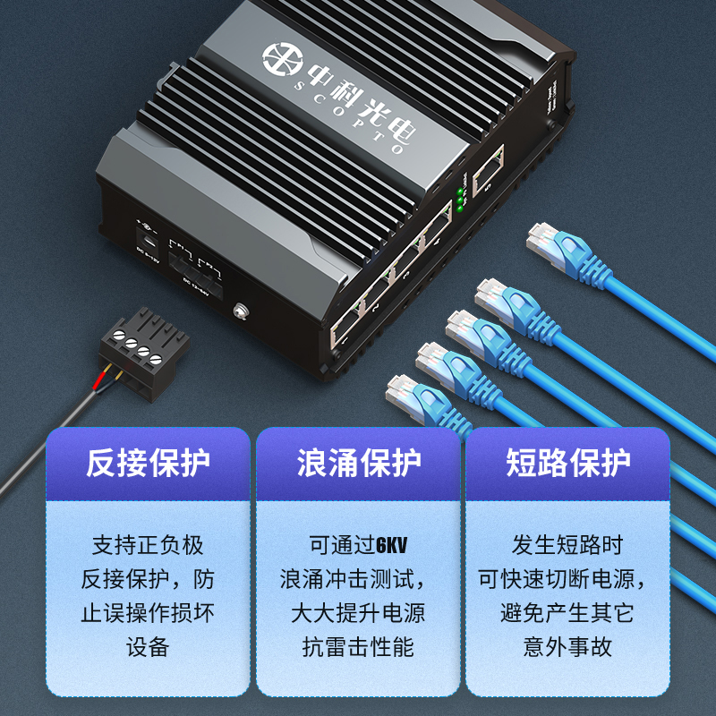 中科光電 工業(yè)級(jí)5口千兆交換機(jī) 安防監(jiān)控工業(yè)以太網(wǎng)交換機(jī) 12V/24V/48V供電導(dǎo)軌壁掛式安裝 ZK-7500-10-5GT