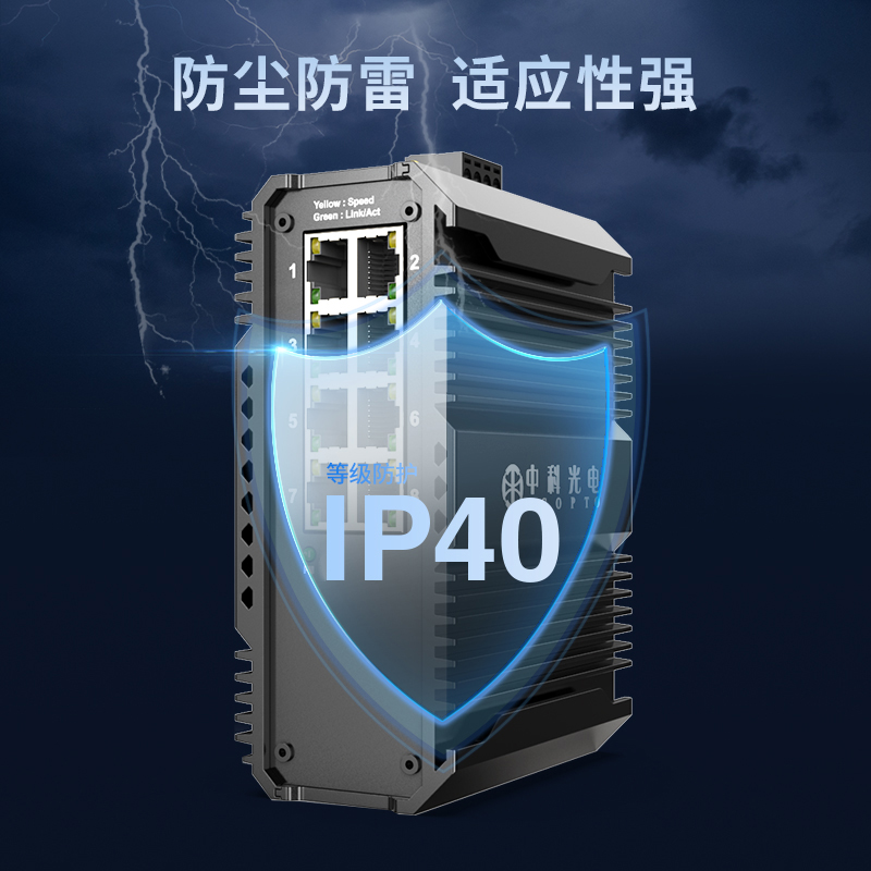 中科光電 工業(yè)級(jí)8口千兆交換機(jī) 安防監(jiān)控工業(yè)以太網(wǎng)交換機(jī) 12V/24V/48V供電導(dǎo)軌壁掛式安裝 ZK-7500-15-8GT