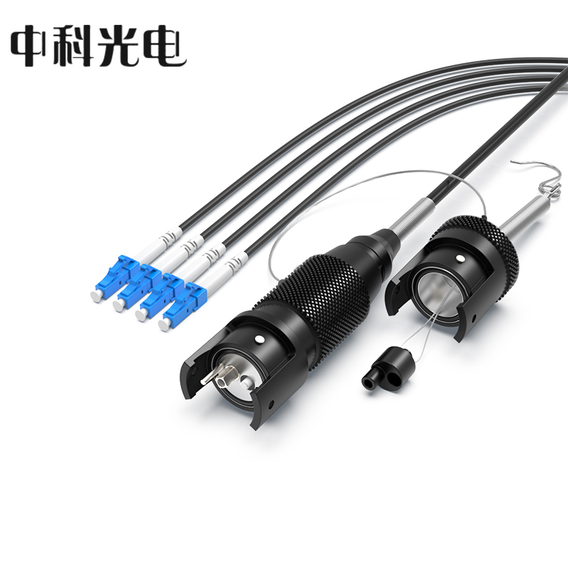 中科光電 室外單模4芯野戰(zhàn)光纜轉(zhuǎn)接頭連接器轉(zhuǎn)接線 航空金屬公頭轉(zhuǎn)LC接頭光纖跳線 3米 ZK-4S-JHGL3