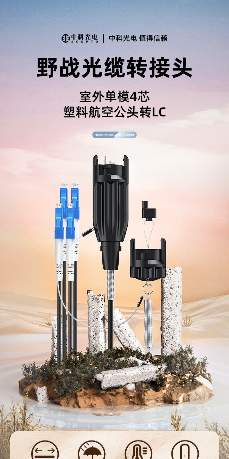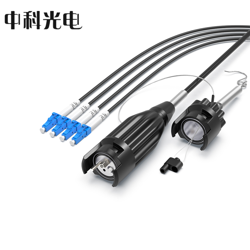 中科光電 室外單模4芯野戰(zhàn)光纜轉(zhuǎn)接頭連接器轉(zhuǎn)接線 航空塑料公頭轉(zhuǎn)LC接頭光纖跳線 3米 ZK-4S-SHGL3