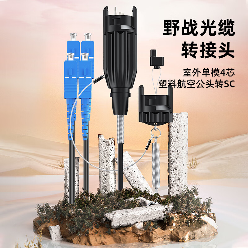 中科光電 室外單模4芯野戰(zhàn)光纜轉(zhuǎn)接頭連接器轉(zhuǎn)接線 航空塑料公頭轉(zhuǎn)SC接頭光纖跳線 3米 ZK-4S-SHGS3