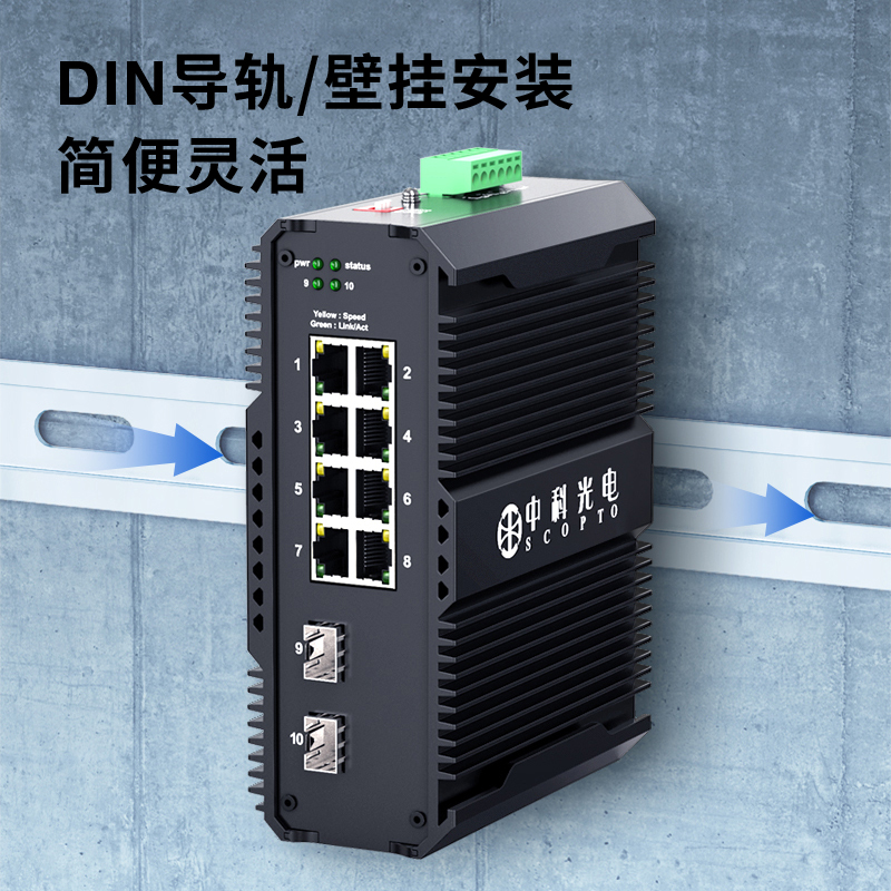 中科光電 工業(yè)級光纖交換機 8口千兆電+2萬兆光口 光纖收發(fā)器 光電轉(zhuǎn)換器 導(dǎo)軌式 ZK-7500-18-2XG8GT-SFP