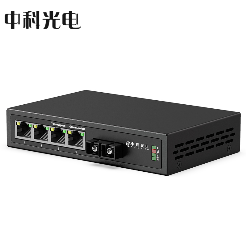 中科光電ZK-FE/104-2KM 電信級 百兆1光4電 多模雙纖光纖收發(fā)器光電轉(zhuǎn)換器 SC接口 2公里一臺