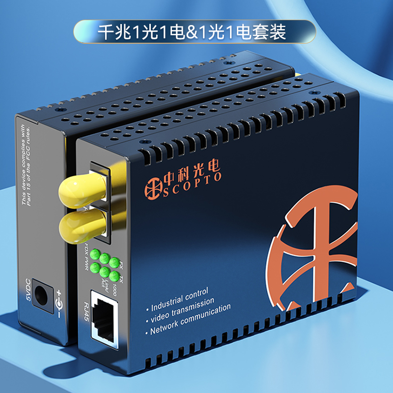 中科光電 千兆單模雙纖光纖收發(fā)器 光電轉(zhuǎn)換器 外置電源 ST接口 10公里一臺 ZK-GE-10KM/ST