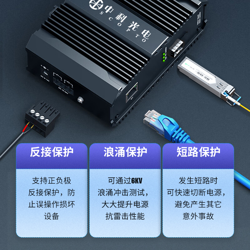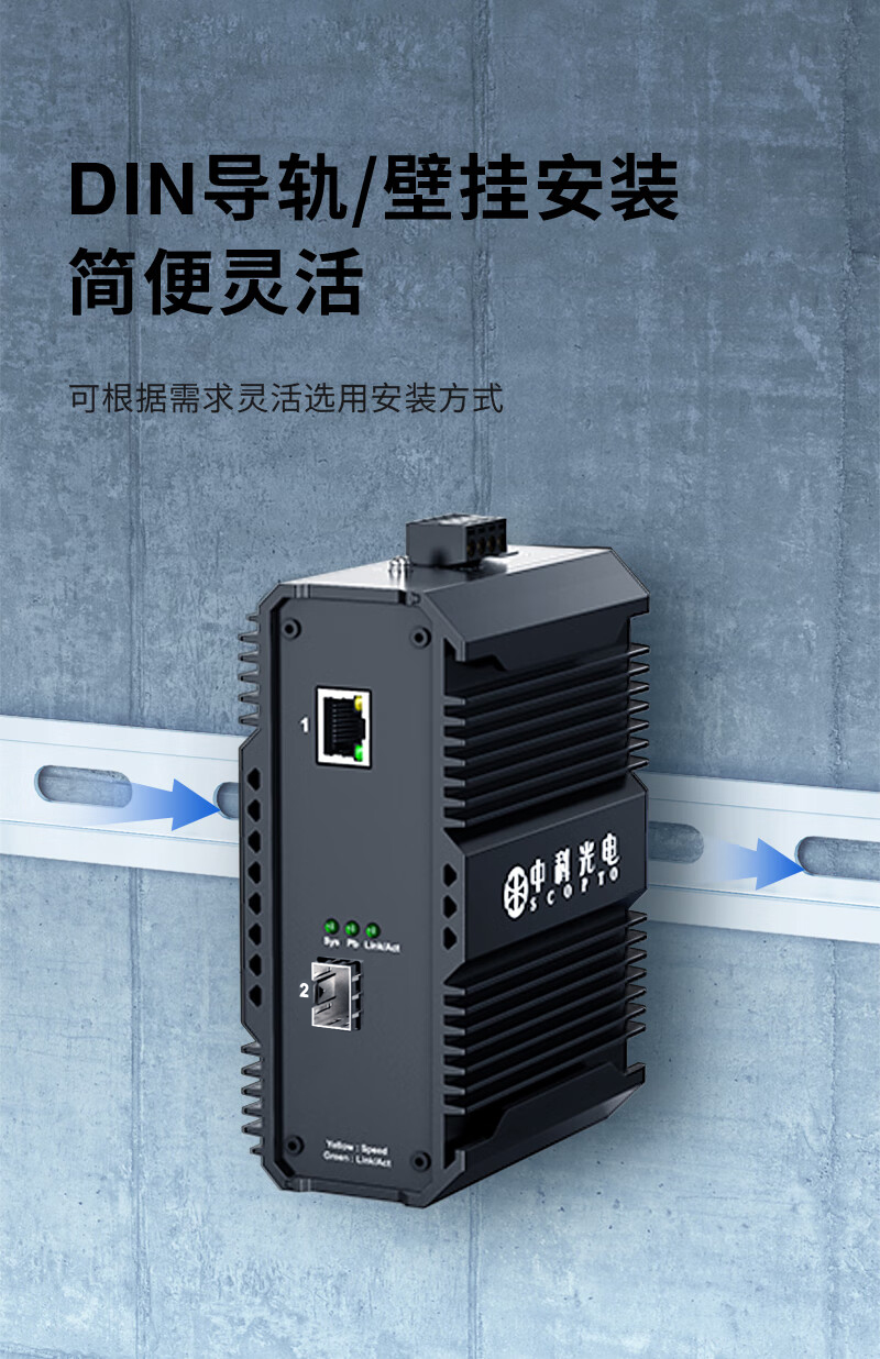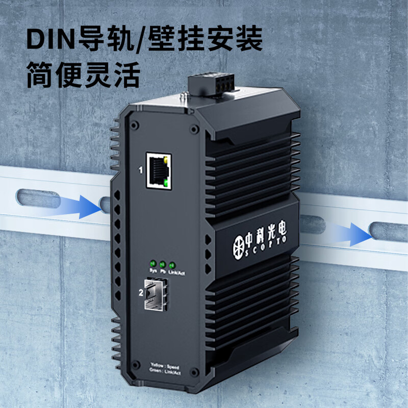 中科光電 工業(yè)級(jí)以太網(wǎng)光纖交換機(jī) 千兆1光1電口 光電轉(zhuǎn)換器12V導(dǎo)軌式1.25G光纖收發(fā)器