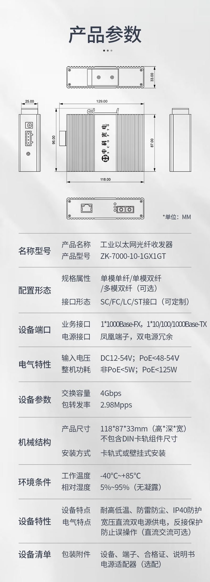 中科光電工業(yè)級光纖收發(fā)器千兆單模單纖1光1電導(dǎo)軌式光電轉(zhuǎn)換器12V以太網(wǎng)交換機(jī)