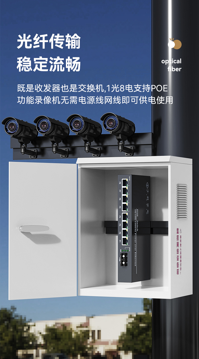 中科光電 POE光纖收發(fā)器 百兆單模雙纖1光8電+1光1電 光電轉(zhuǎn)換器 網(wǎng)絡(luò)光端機(jī)ZK-FE/108P-10KM ZK-FE-10KM一對