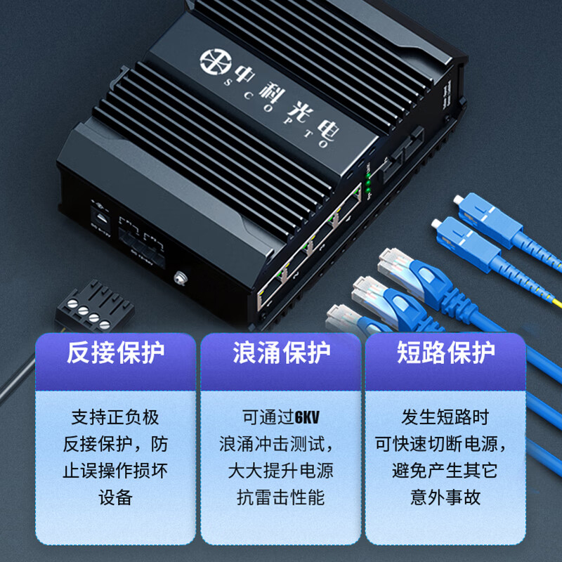 中科光電 POE工業(yè)級光纖收發(fā)器 千兆單模雙纖1光4電轉(zhuǎn)換器以太網(wǎng)交換機(jī)48V導(dǎo)軌式 SC接口