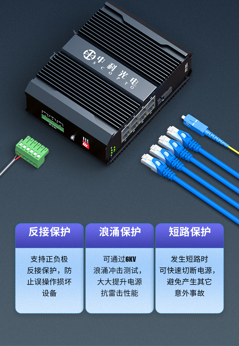 中科光電 工業(yè)級(jí)光纖收發(fā)器 千兆單模單纖1光8電轉(zhuǎn)換器以太網(wǎng)交換機(jī)24V48V導(dǎo)軌式SC接口