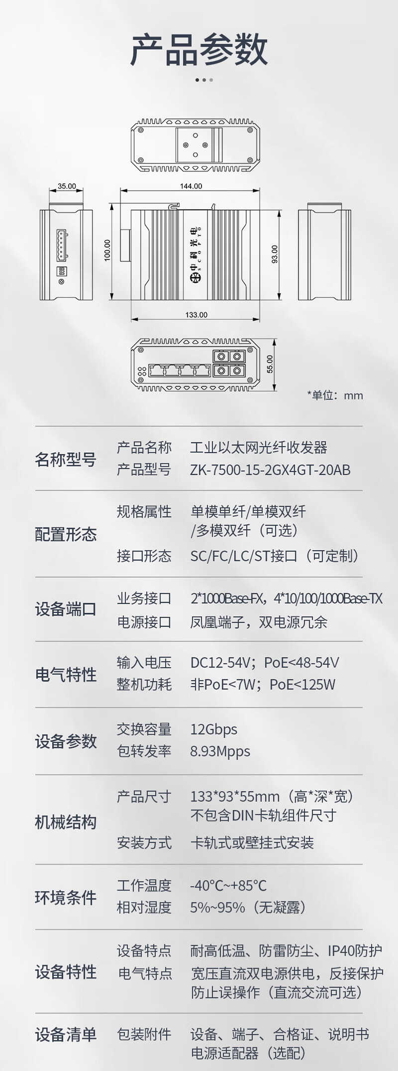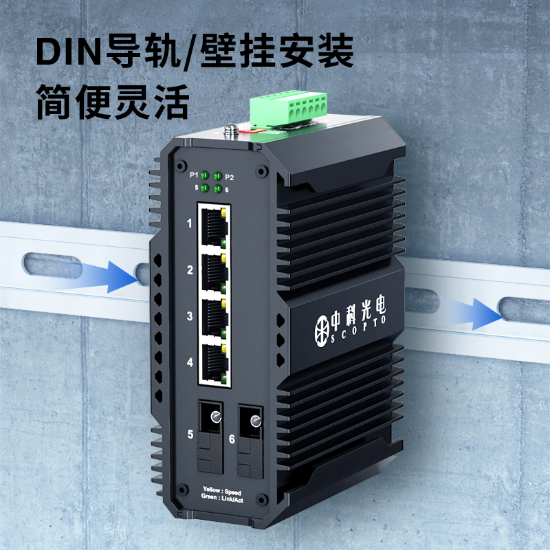 中科光電 工業(yè)級(jí)光纖收發(fā)器 千兆單模單纖2光4電轉(zhuǎn)換器以太網(wǎng)交換機(jī)24V48V導(dǎo)軌式SC接口