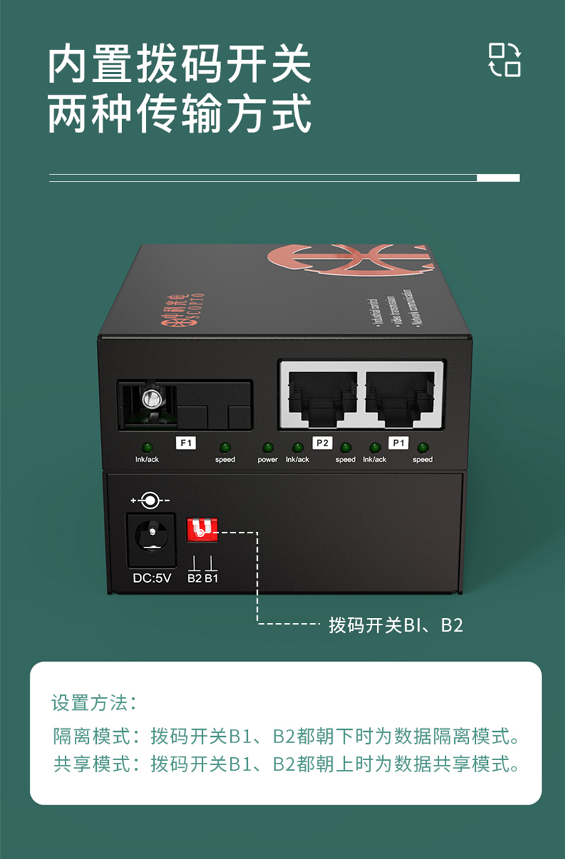 中科光電 百兆1光2電單模單纖光纖收發(fā)器 光電轉(zhuǎn)換器 網(wǎng)絡(luò)端口VLAN隔離型SC接口 20~120KM可選