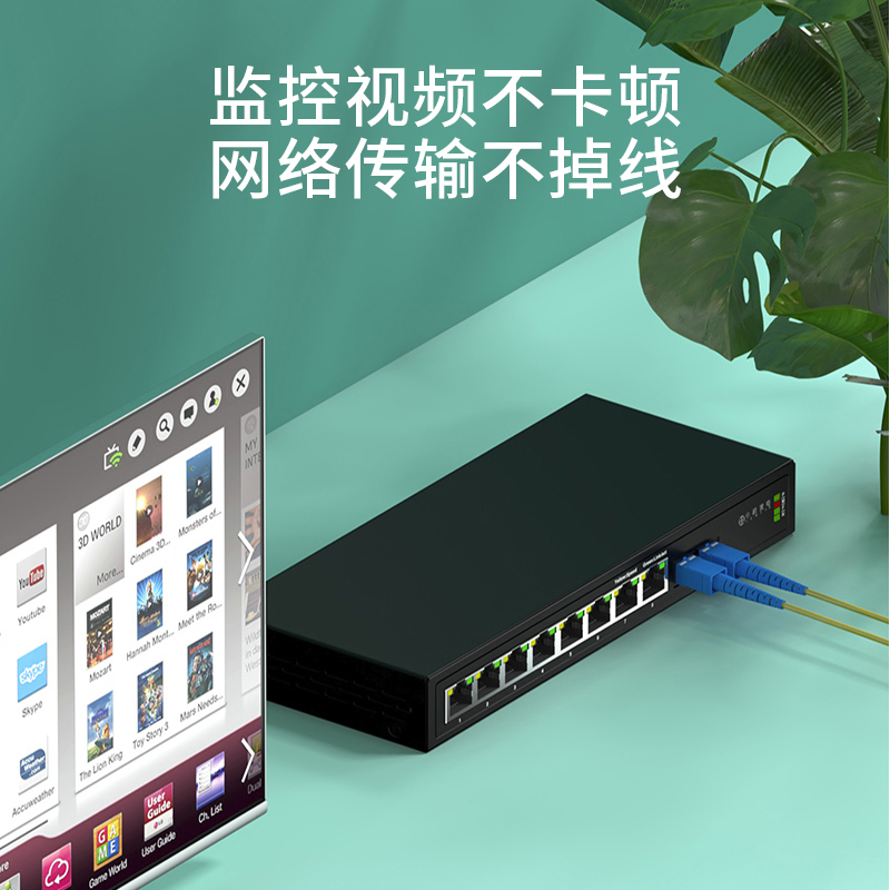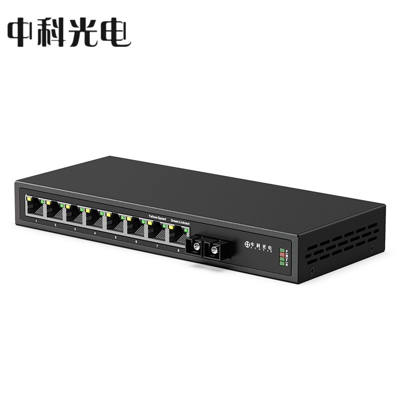 中科光電 光纖收發(fā)器 百兆單模雙纖 光電轉換器 1光8電 默認SC接口 可定制FC/LC/ST口 10-120KM可選