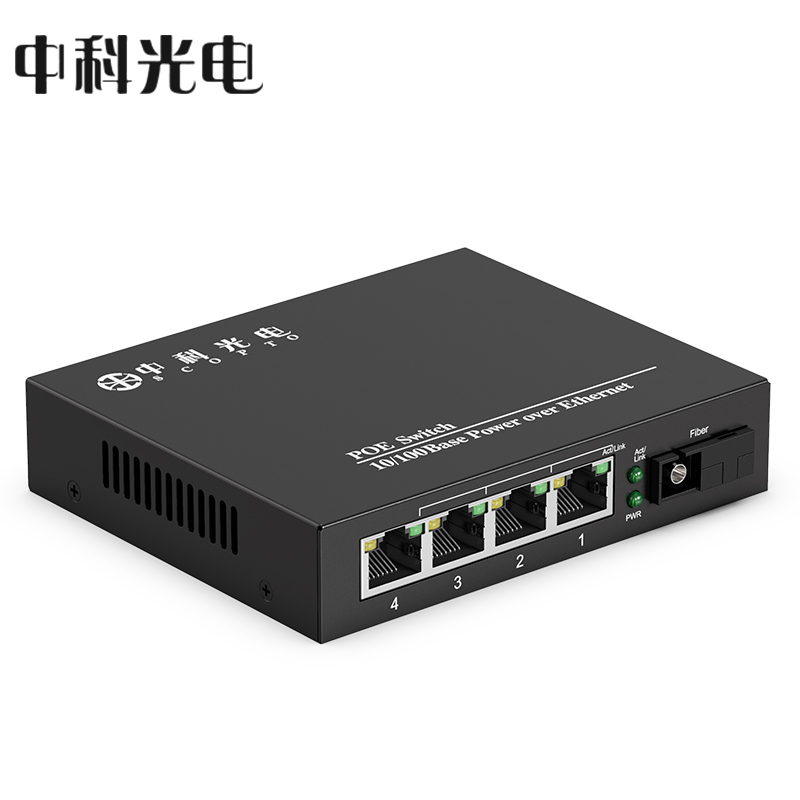 中科光電ZK-FE/104-25A/POE光纖收發(fā)器 百兆1光4電單模單纖 監(jiān)控網(wǎng)絡(luò)光電轉(zhuǎn)換器 SC接口 25公里一臺(tái)