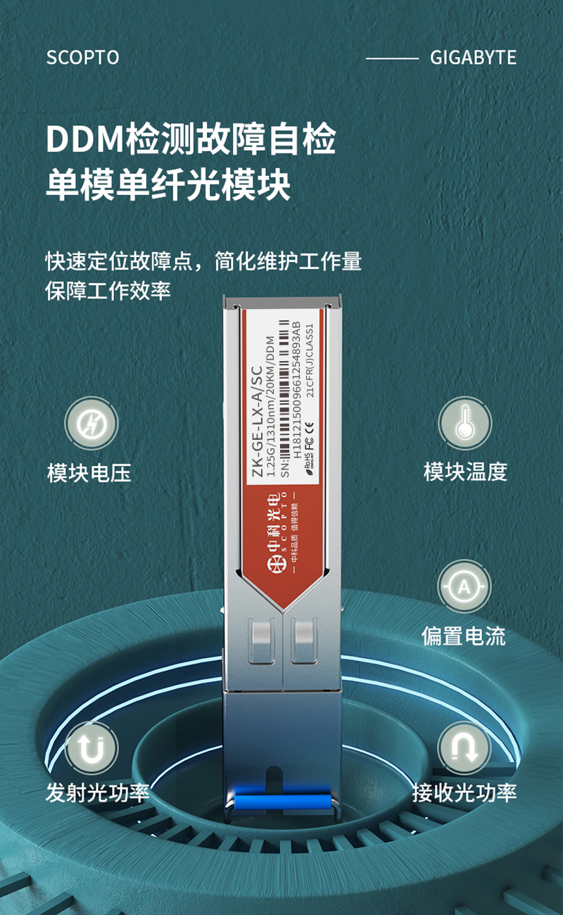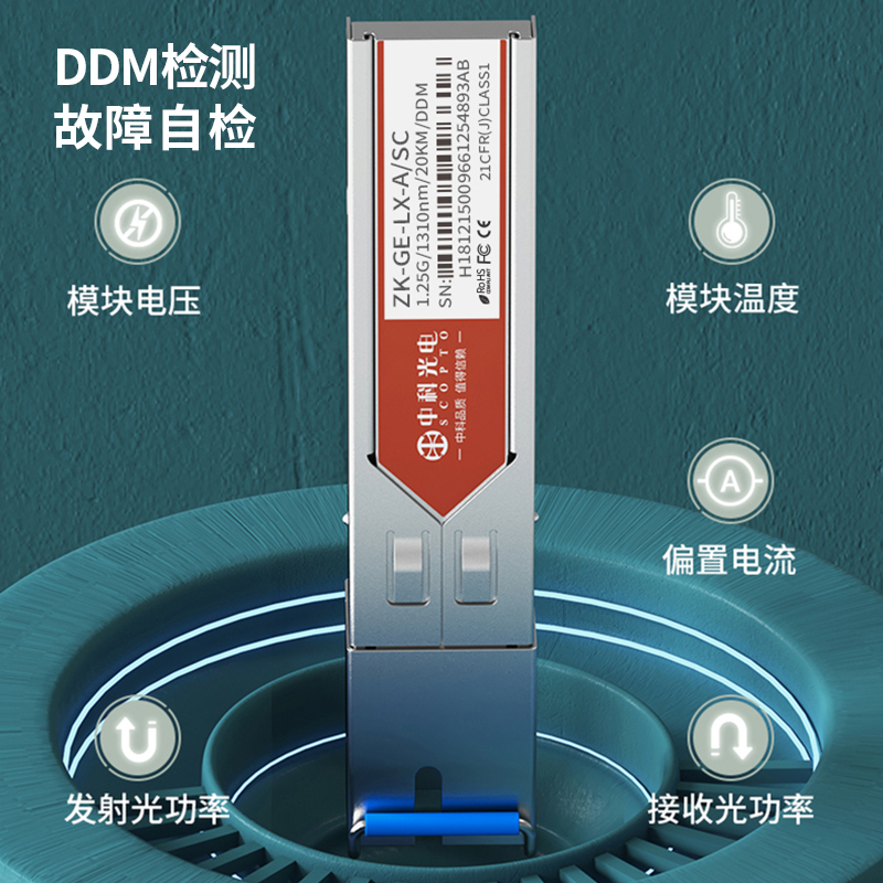 中科光電ZK-GE-LX-A/SC 光模塊千兆1.25G單模單纖光纖模塊(1310nm,20km,SC)A適配銳捷GE-SFP-LX-SM1310-BIDI