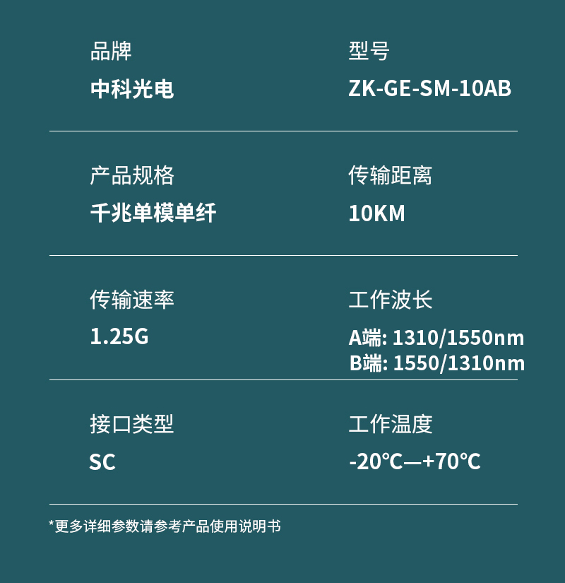 中科光電 千兆光模塊 SFP光模塊 1.25G單模光模塊 單模單纖 1310nm/1550nm,10KM,SC接口一對ZK-GE-SM-10AB