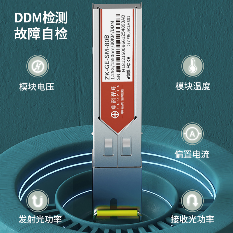 中科光電 千兆光模塊 SFP光模塊 1.25G單模光模塊 單模單纖 1490nm/1550nm,80KM,SC接口一對ZK-GE-SM-80AB