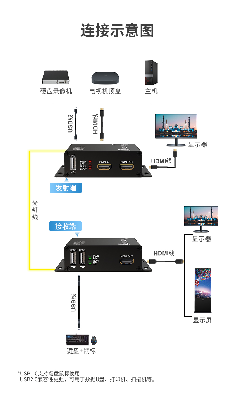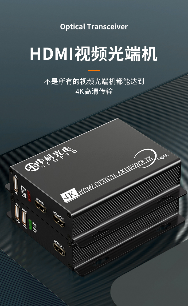中科光電 非壓縮全高清4K HDMI視頻光端機(jī)1路視頻+本地環(huán)出+USB1.0光纖延長(zhǎng)器轉(zhuǎn)換器LC接口ZK-HDMI/4K-RU