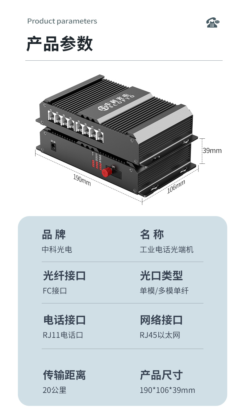 工業(yè)級(jí) 8路電話光端機(jī) FC接口