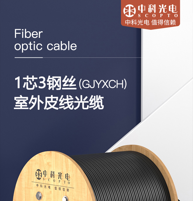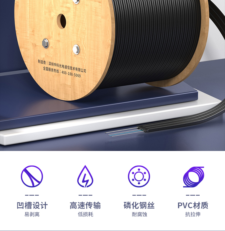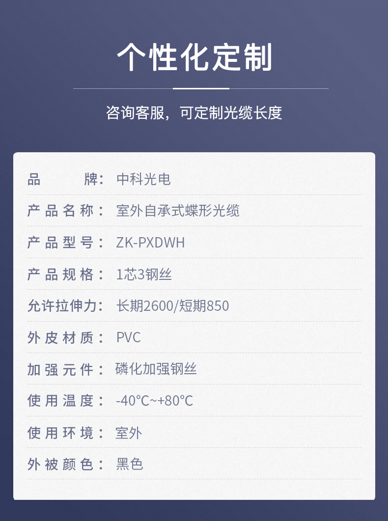 中科光電  蝶形皮線光纖光纜 室外自承式5.0單芯 1芯3鋼絲 低煙無鹵入戶光纖線黑色  長度可定制