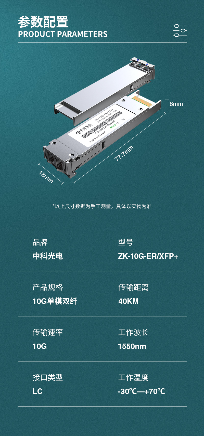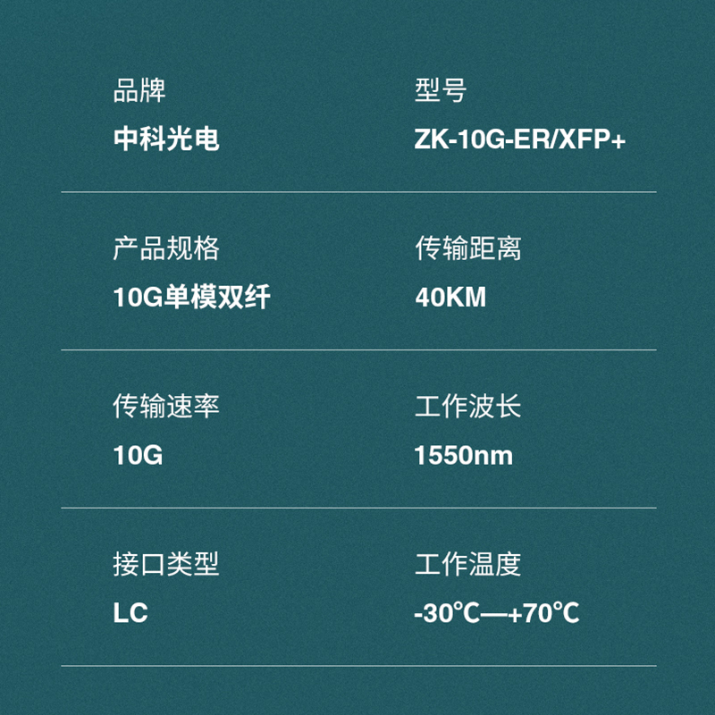 中科光電 XFP光纖模塊萬兆 10G單模雙纖(1550nm,40KM,LC)適用各品牌華為華三H3C思科銳捷 ZK-10G-ER/XFP+