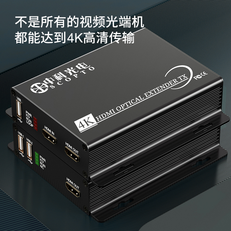 中科光電 4K超高清 HDMI視頻光端機(jī) HDMI轉(zhuǎn)光纖延長器收發(fā)器 本地環(huán)出+USB鍵鼠控制 ZK-HDMI/4K-RU