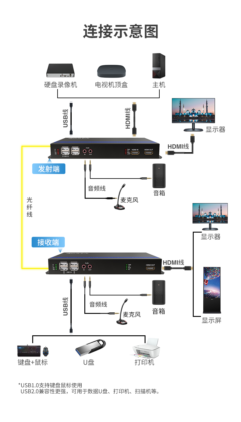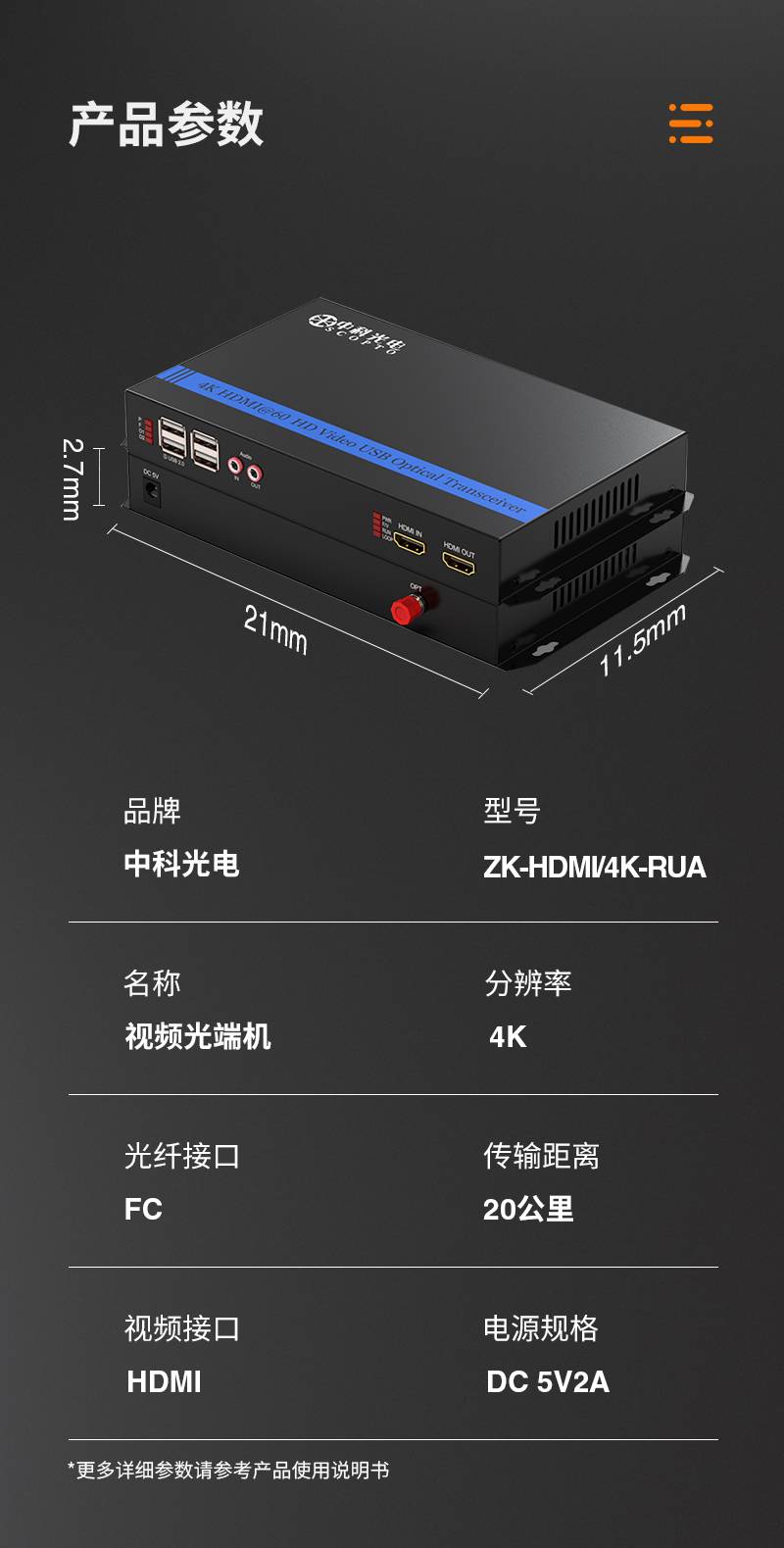 中科光電 4K超高清 HDMI視頻光端機(jī) HDMI轉(zhuǎn)光纖延長器收發(fā)器 本地環(huán)出+音頻+USB鍵鼠控制ZK-HDMI/4K-RAU