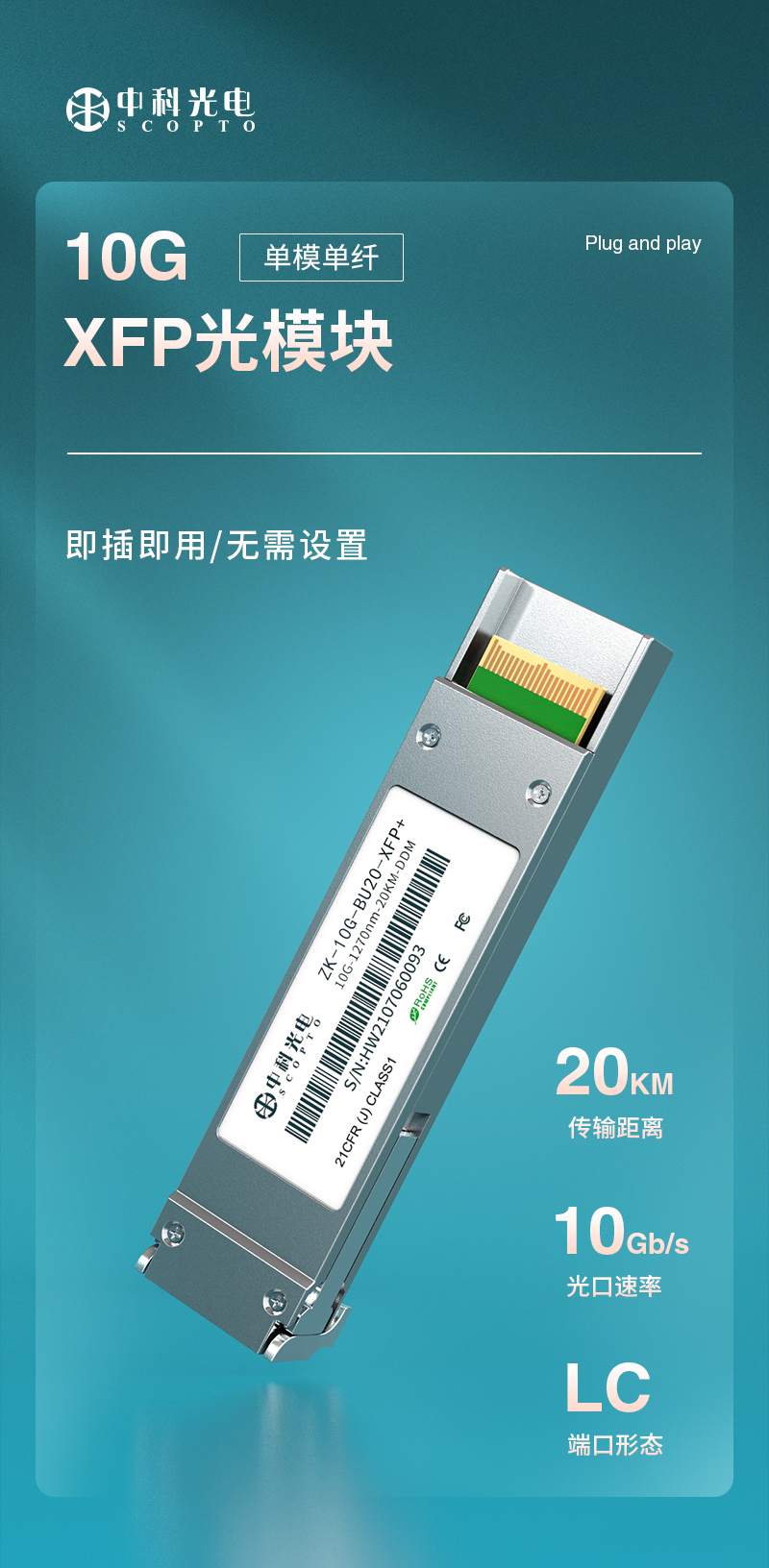 中科光電 XFP光纖模塊萬兆 10G單模單纖 20KM 一對 A端/ZK-10G-BU20-XFP+ B端/ZK-10G-BD20-XFP+