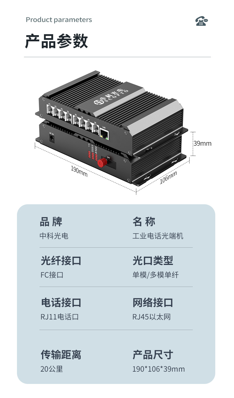 中科光電 電話光端機(jī)8路電話+1路百兆網(wǎng)絡(luò) 以太網(wǎng)光纖收發(fā)器 光纖傳輸 FC接口 PCMS-ZK-1000-8P1E
