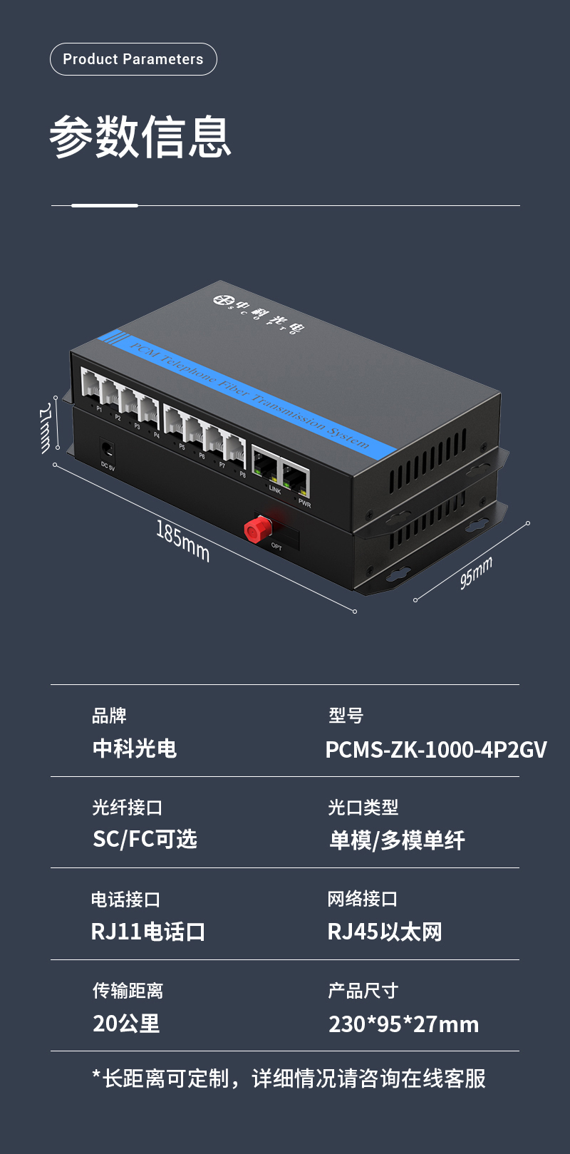 中科光電 電話光端機(jī)4路電話+2路千兆網(wǎng)絡(luò)物理隔離以太網(wǎng) 光纖傳輸 FC接口 PCMS-ZK-1000-4P2GV
