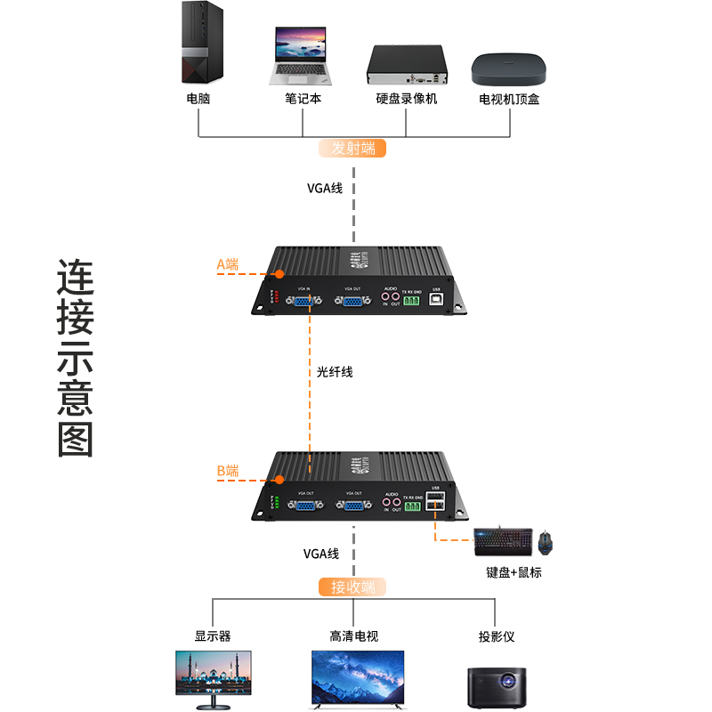 中科光電 非壓縮全高清VGA視頻光端機(jī) 1路視頻+環(huán)出+USB鍵鼠控制+雙向音頻轉(zhuǎn)光纖延長(zhǎng)器FC接口 ZK-VGA/F-RUA