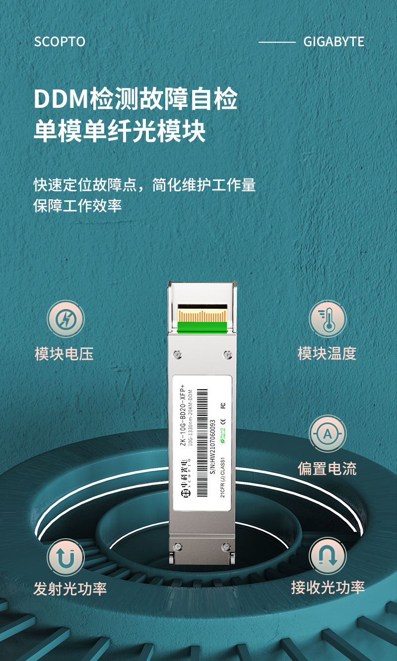 中科光電 XFP光纖模塊萬(wàn)兆 10G單模單纖(1330nm,20KM,LC)適用各品牌華為華三H3C思科銳捷ZK-10G-BD20-XFP+