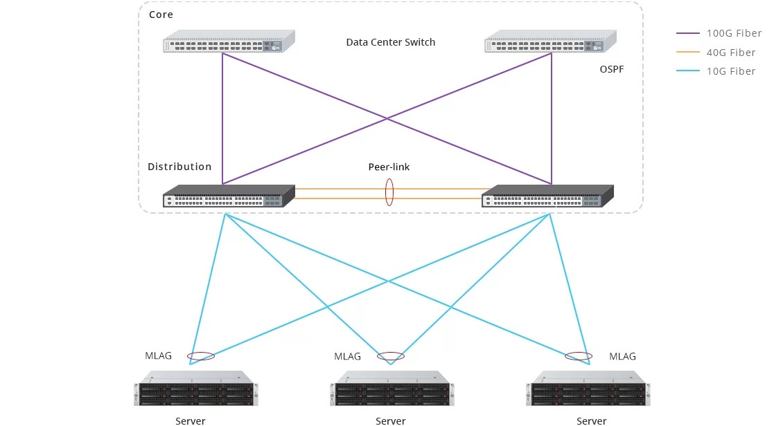 為滿足數(shù)據(jù)中心&云計(jì)算網(wǎng)絡(luò)對(duì)網(wǎng)絡(luò)帶寬和可靠性的極高要求,F(xiàn)S(飛速)推薦通過MLAG跨設(shè)備鏈路聚合的機(jī)制,實(shí)現(xiàn)多臺(tái)設(shè)備間的鏈路聚合,達(dá)到系統(tǒng)級(jí)冗余,同時(shí)當(dāng)網(wǎng) 絡(luò)流量增加時(shí)能提供更高帶寬。